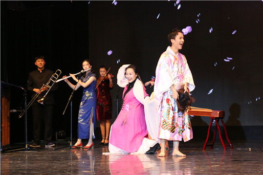 随后,16级文化产业管理班的精彩热舞《panama》拉开班级魅力秀节目表演帷幕,接下来的各个班级更是使出浑身解数,带来精彩纷呈的节目。从15级美术学(文化艺术管理)班的三人合唱《奔跑》到16级艺术史论班的朗诵《致青春》,再到17级音乐学(文化艺术管理)班的器乐合奏舞蹈《幸福所在之处》等节目,表演氛围浓郁,台下观众更是热情高涨。在阵阵掌声中晚会持续处于高潮。晚会同时也成为师生同乐的大舞台,15级音乐学(文化艺术管理)班班主任周游、16级美术学(文化艺术管理)班班主任林道佳、17级文化产业管理班班主任谭娟、17级音乐学(文化管理)班班主任宋泉、17级艺术史论班班主任王珅老师纷纷参与到各自班级的表演之中,引起了现场的阵阵喝彩。晚会中,14级毕业班员工赵俊杰惊喜现身,以一首《什么》引发全体合唱;研究生项心怡同学带来的古筝独奏节目《彝族舞曲》带领大家感受了独特的彝族风情,别有韵味。此外,主持人积极与观众互动,以现场连线幸运观众和猜字谜两种形式送出了精美礼品。晚会接近尾声时,特别嘉宾朱远航与万物攀升乐队带来特别演出,分别演唱歌曲《阿楚姑娘》、《无情的情书》和《攀升》、《北方》。本次班级魅力秀,通过结合观众投票数和现场评委嘉宾评分最终角逐出“最佳表演奖”等7项大奖。最后的颁奖仪式也标志着本次班级魅力秀的圆满结束。