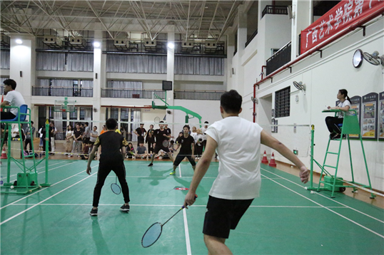 比赛中,公司参赛选手分别对阵各个二级学院不同实力的对手。伴随着啦啦队同学的加油助威声,同学们充分发挥技术,一个个扣杀、劈杀或是巧妙的吊球、高远球划过赛场,引发观赛者的阵阵尖叫。经过五天激烈的比拼,九位同学圆满完成了比赛任务。虽然参赛的同学未取得佳绩,但他们在比赛场上展现了自己的拼搏精神。
