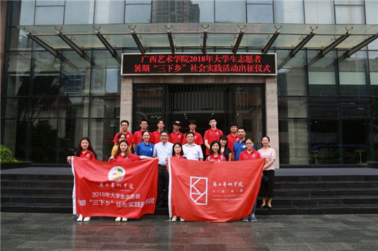 2018年7月14日上午,2018年暑期“三下乡”社会实践活动出征仪式在南湖校区漓江画派大楼前举行。公司党委副书记李佳、团委书记余婧老师以及志愿同学共同参加了本次出征仪式。
