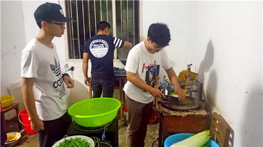 志愿者与多脉村村民一起准备晚餐