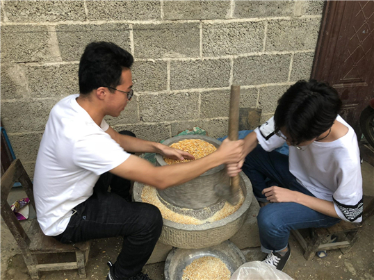 志愿者帮助多脉村村民务农