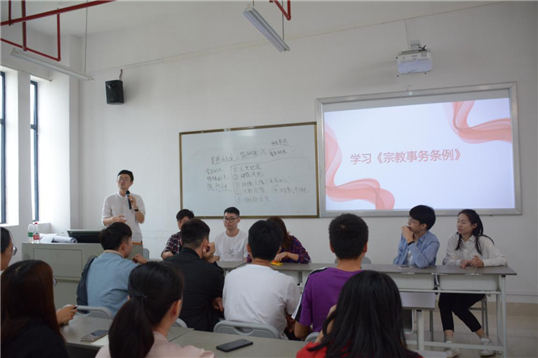 余婧老师带领团委、员工会全体员工干部学习《宗教事务条例》