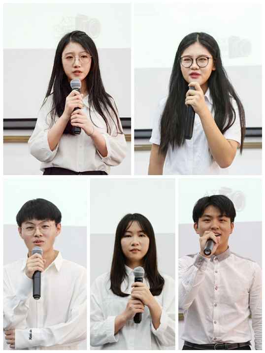 大会最后,辅导员卫修明老师和王珅老师作了总结发言。王珅老师以一首提前准备好的一首诗来鼓励和感谢记者团即将卸任的老干部,她提到“记者团永远是大家的记者团”,每一位成员的辛苦付出都值得用赞美回应。卫修明老师围绕“难忘初心、驻守当下、展望未来”三个关键词回顾了记者团的成长历程,希望全体团员做到立足当下、尽力而为、关顾大局,努力为学院宣传工作贡献力量。